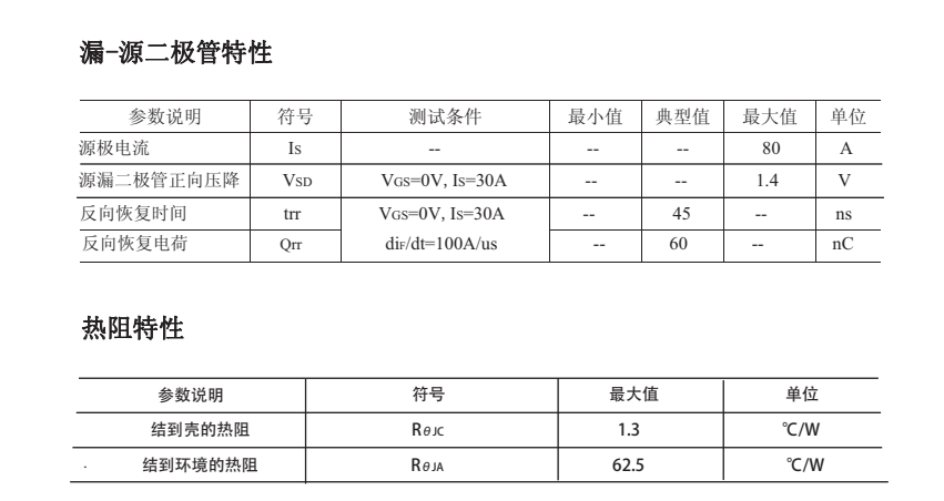 最大脈沖漏極電流(IDM ):480(A);靜態導通電阻(typ):VGS=10V則為2.95mΩ;反向傳輸電容:97pF。