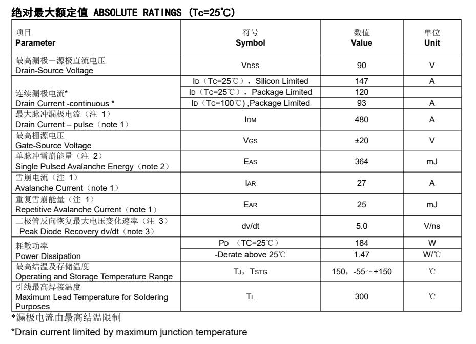 電動車控制器MOS管推薦使用下期,6款場效應管詳細參數數據呈現!