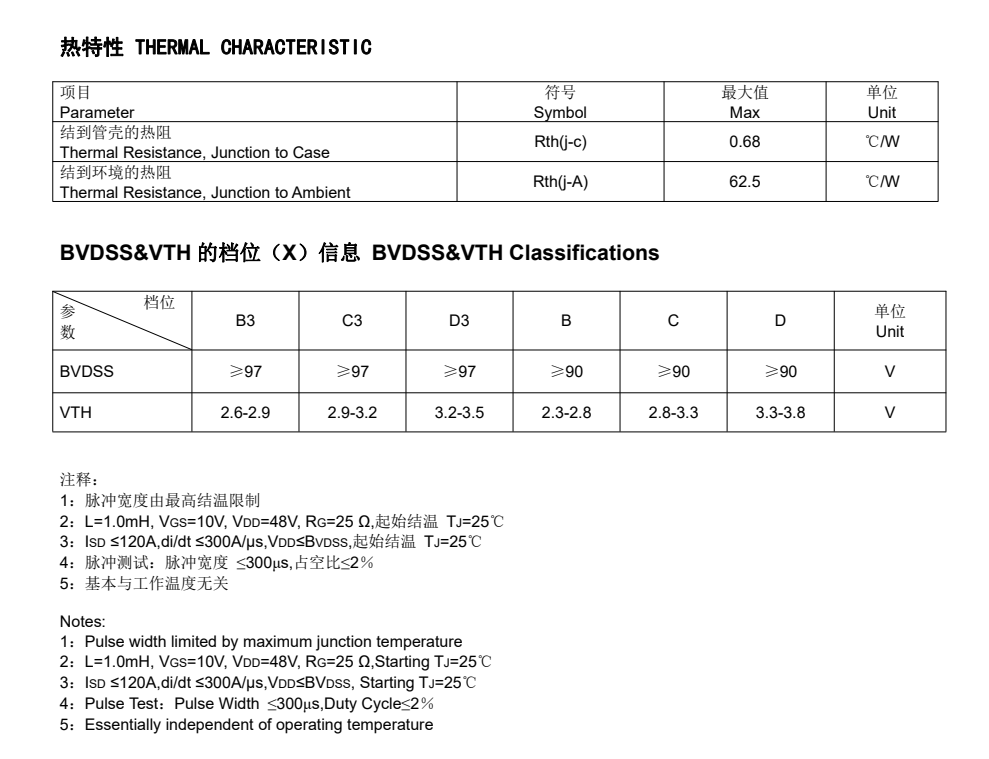 其產品參數:具有120A電流、90V電壓, RDS(on) = 5.4mΩ(max),最高柵源電壓 @VGS =±20 V,SGT 工藝、RoHS 產品、100%經過熱阻測試、100%經過雪崩測試、100%經過 Rg 測試、開關速度快、低 Crss (典型值 pF)、低柵極電荷的特點。